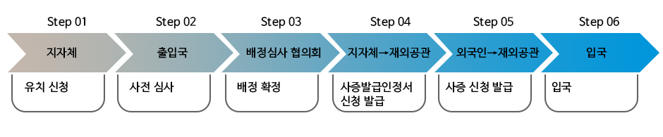 3) 한국 지자체가 계절근로자를 농가에 배정 후 초청절차(사증발급인정신청 및 발급)